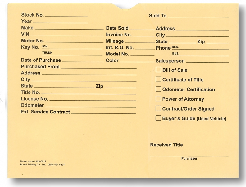 Vehicle Record Jackets