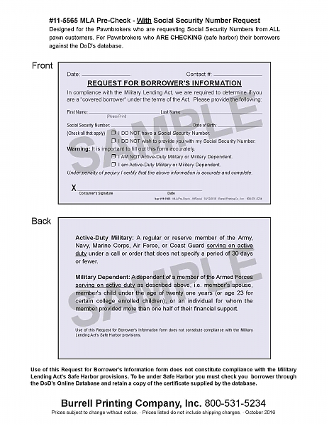 ** This Request for Borrower's Information form does not in itself afford you any specific legal protection and DOES NOT constitute compliance with the Military Lending Act's Safe Harbor provisions.