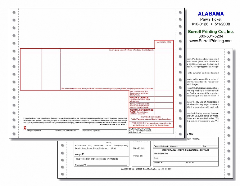Alabama Continuous Pawn Ticket 10-0126