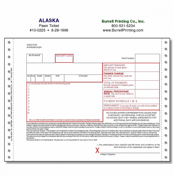 Alaska Continuous Pawn Ticket 10-0225