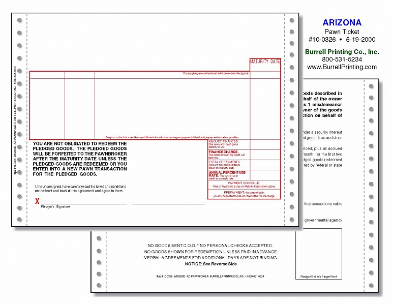 Arizona Continuous Pawn Ticket 10-0326