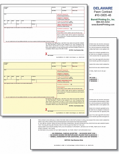 Delaware (Pawn Manager) Laser Pawn Ticket 10-0805-48