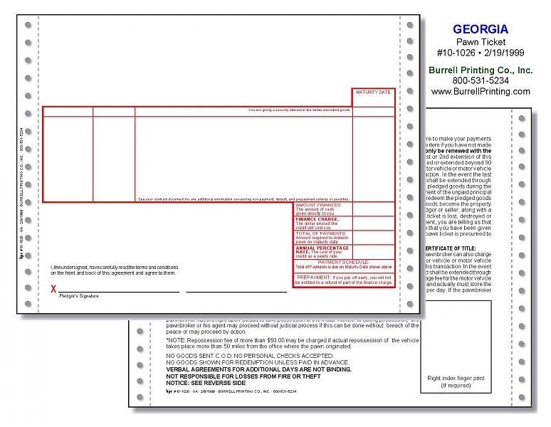 Georgia Continuous Pawn Ticket 10-1026