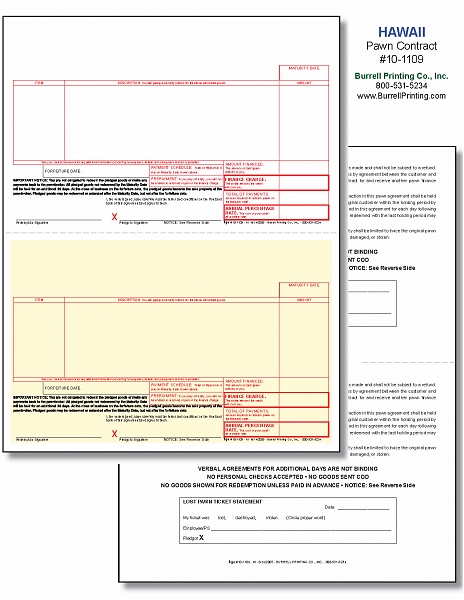 Hawaii (Pawn Master) Laser Pawn Ticket 10-1109