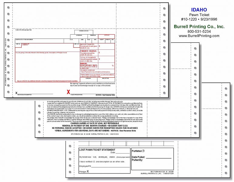 Idaho Continuous Pawn Ticket 10-1220