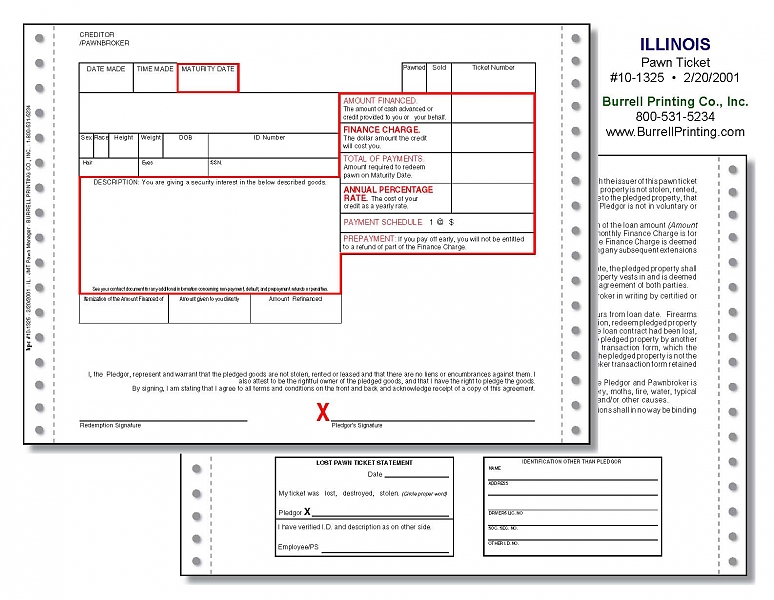 Illinois Continuous Pawn Ticket 10-1325