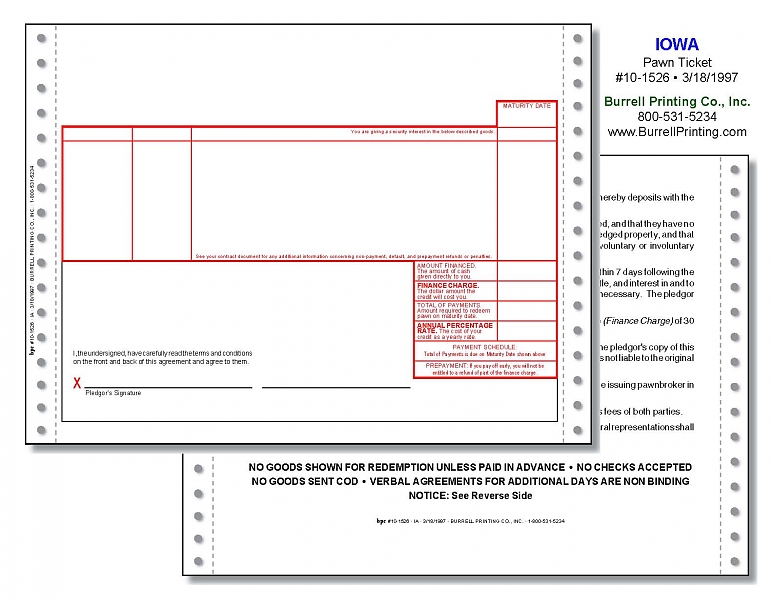 Iowa Continuous Pawn Ticket 10-1526