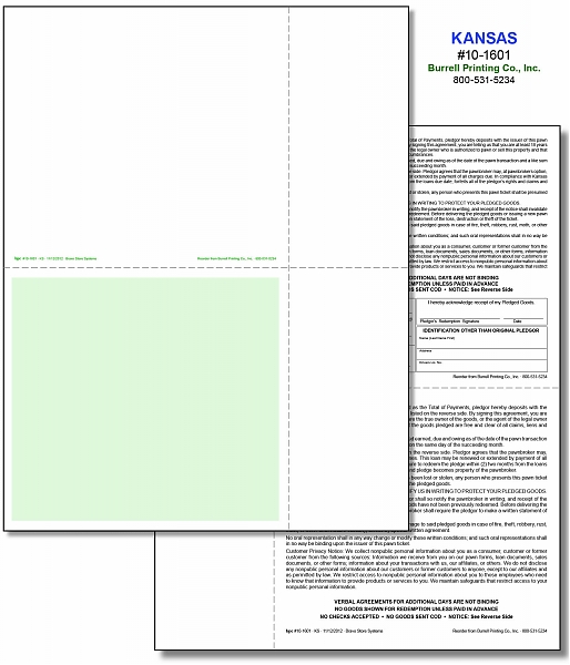 Kansas (Bravo) Laser Pawn Ticket 10-1601