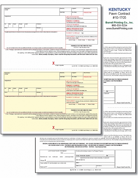 Kentucky (Pawn Manager) Laser Pawn Ticket 10-1705