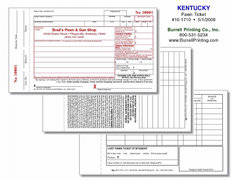 Kentucky Handwritten Pawn Ticket 10-1710