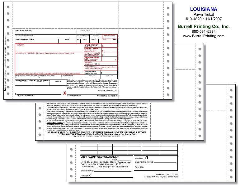 Louisiana Continuous Pawn Ticket 10-1820