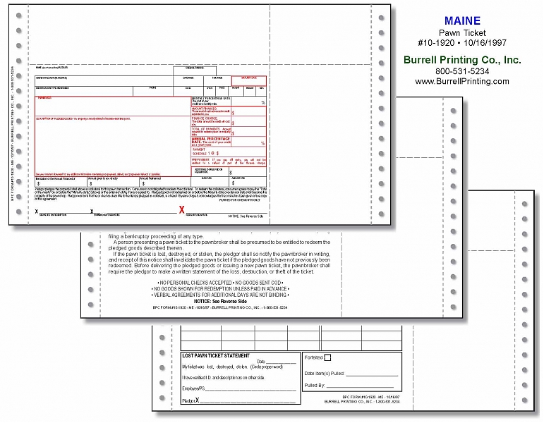 Maine Continuous Pawn Ticket 10-1920