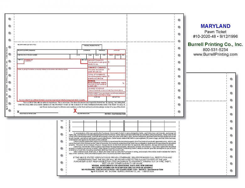 Maryland Continuous Pawn Ticket 10-2020-48