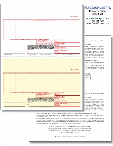 Massachusetts (Pawn Master) Laser Pawn Ticket 10-2109