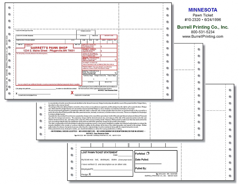Minnesota Continuous Pawn Ticket 10-2320