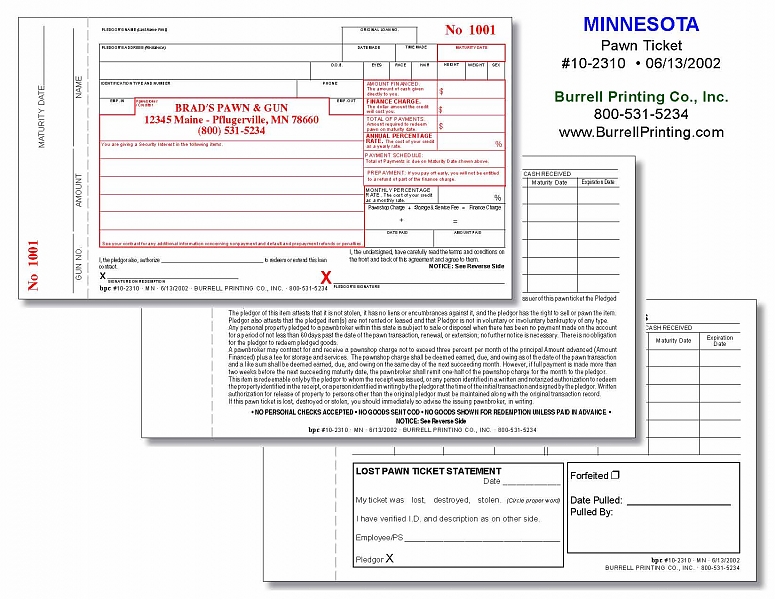 Minnesota Handwritten Pawn Ticket 10-2310
