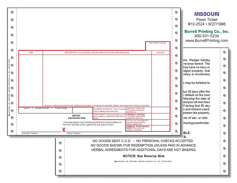 Missouri Continuous Pawn Ticket 10-2524