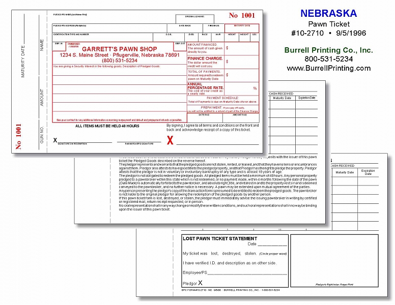 Nebraska Handwritten Pawn Ticket 10-2710
