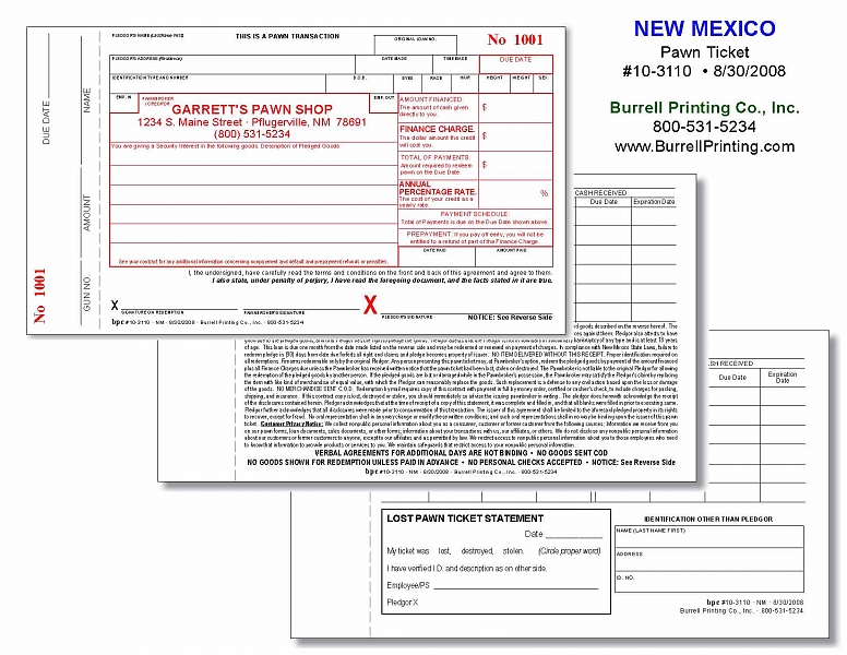 New Mexico Handwritten Pawn Ticket 10-3110