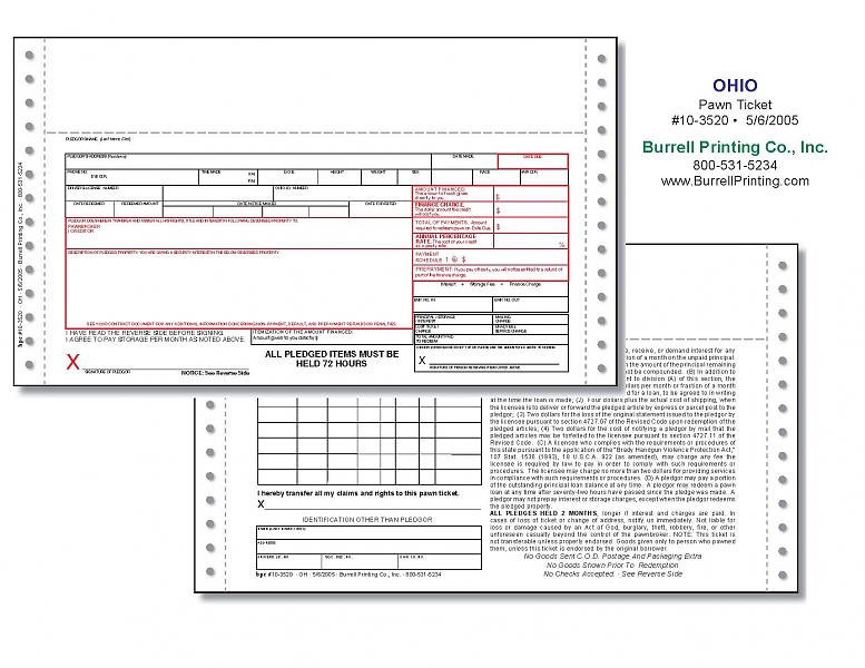 Ohio Continuous Pawn Ticket 10-3520