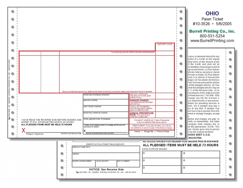 Ohio Continuous Pawn Ticket 10-3526