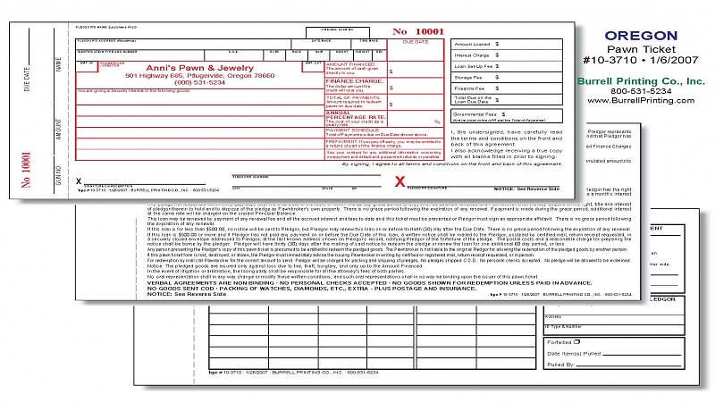 Oregon Handwritten Pawn Ticket 10-3710
