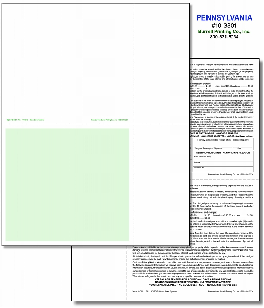 Pennsylvania (Bravo) Laser Pawn Ticket 10-3801