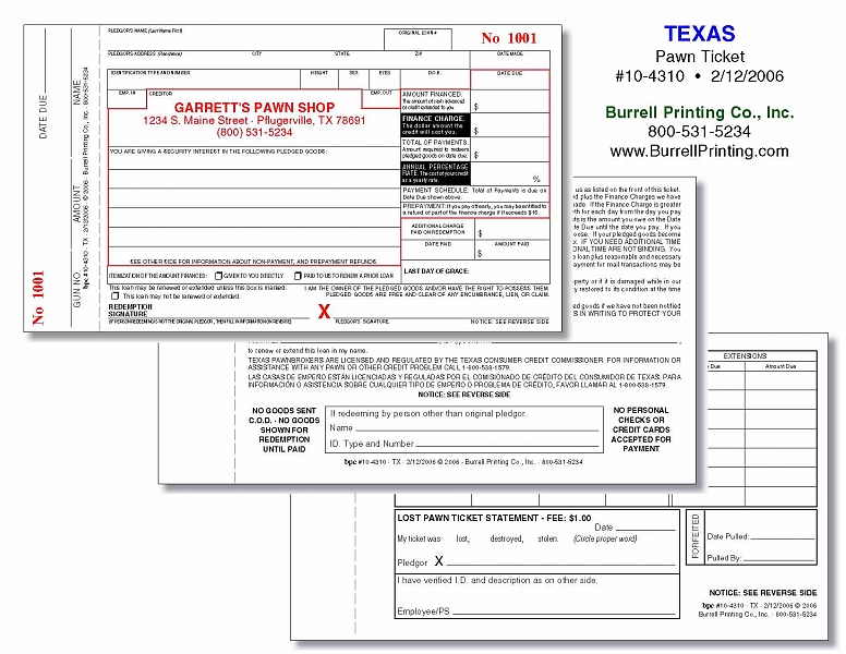 Texas Handwritten Pawn Ticket 10-4310