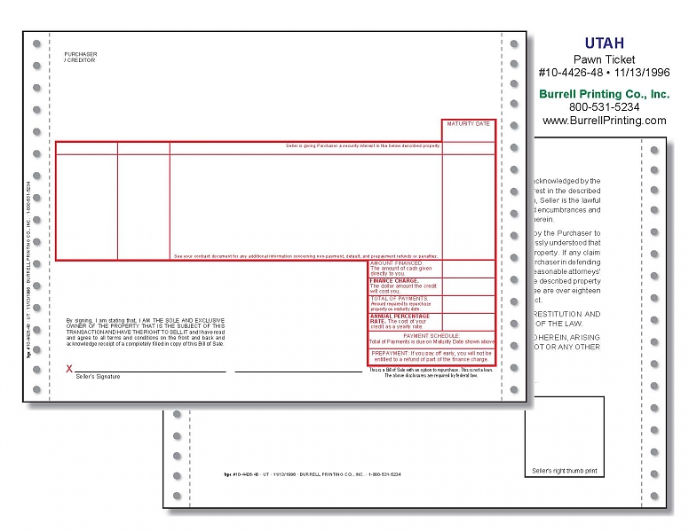 Utah Continuous Pawn Ticket 10-4426-48