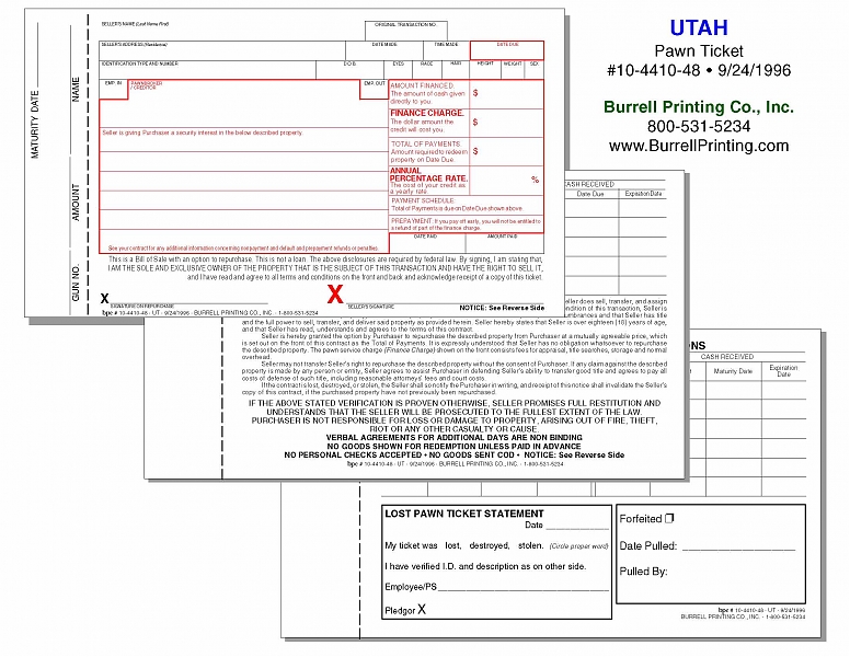 Utah Handwritten Pawn Ticket 10-4410-48