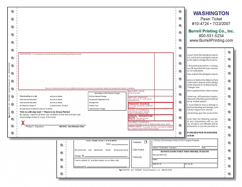 Washington Continuous Pawn Ticket 10-4724