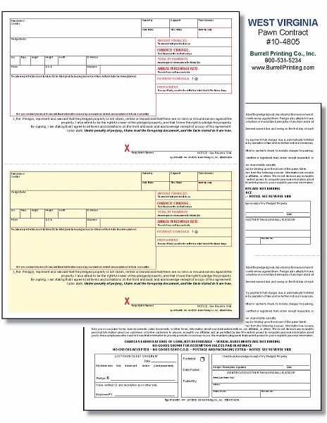West Virginia (Pawn Manager) Laser Pawn Ticket 10-4805