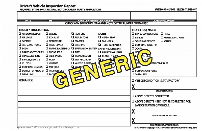 Driver's Daily Vehicle Inspection Report - Generic